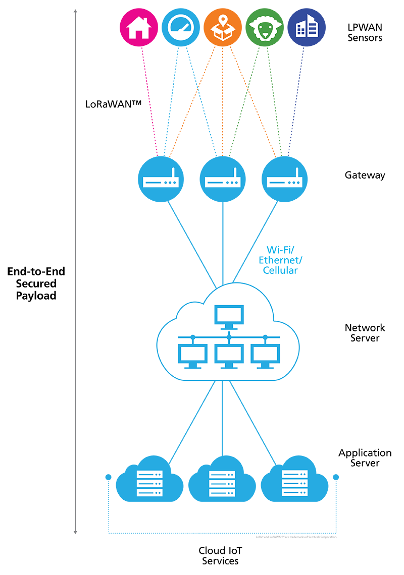 LoRaWAN在协议和网络架构的设计上,充分考虑了节点功耗,网络容量,QoS,安全性和网络应用多样性等几个因素。LoRaWAN协议针对低功耗,特别是户外使用,通过电池供电时,为设备的功耗进行优化,提供更长的续航能力。